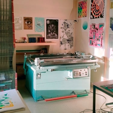 Grâce à un équipement semi-automatique Tamam est en mesure de produire de très belles sérigraphies pour un prix raisonnable. La vente de sérigraphies permet aux artistes de diffuser plus largement leur travail et de le rendre accessible au plus grand nombre.